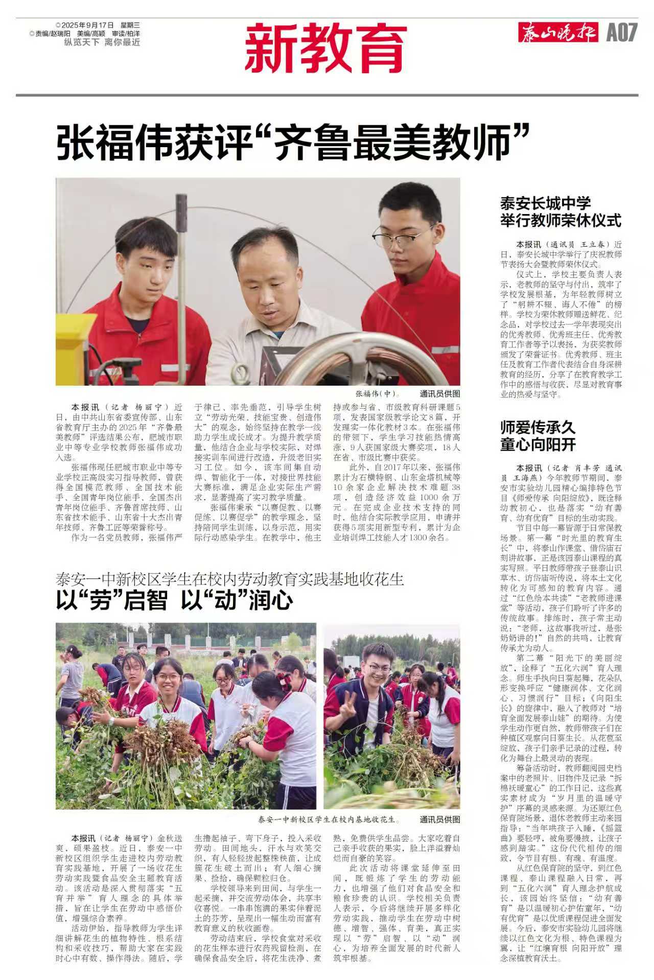 【泰安日报】泰安长城中学组