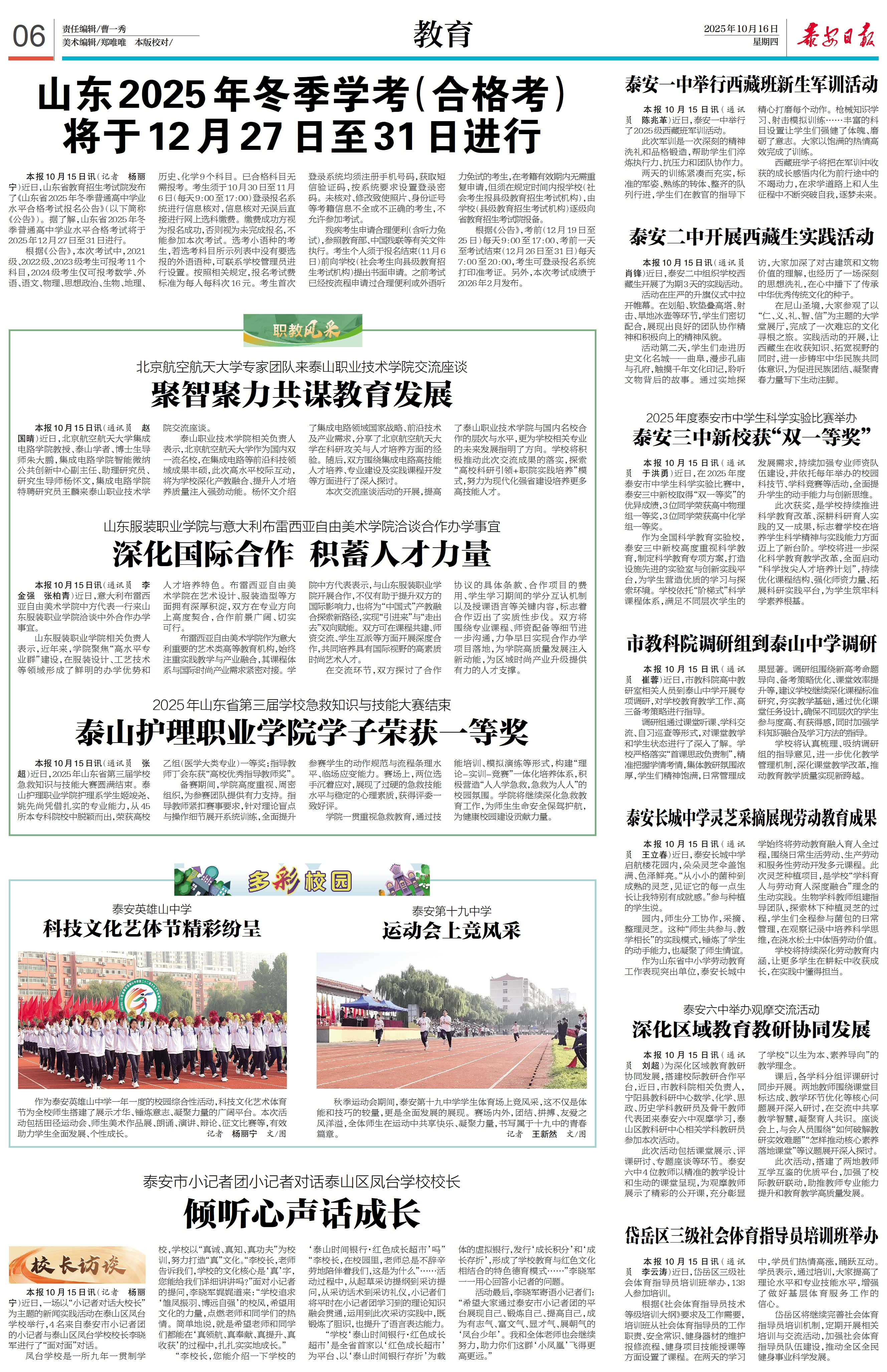 【泰安日报】泰安长城中学组