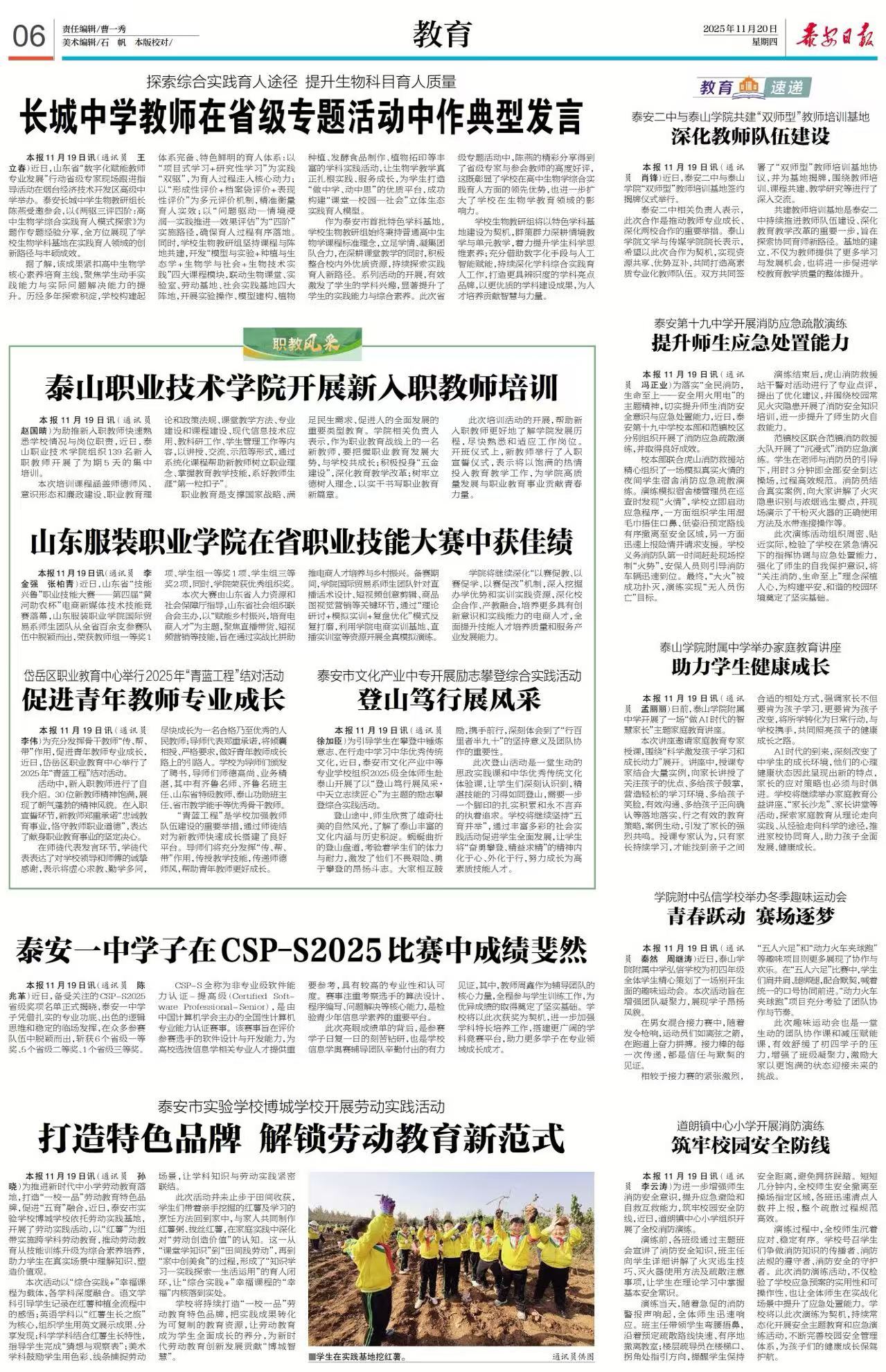 【泰安日报】泰安长城中学组