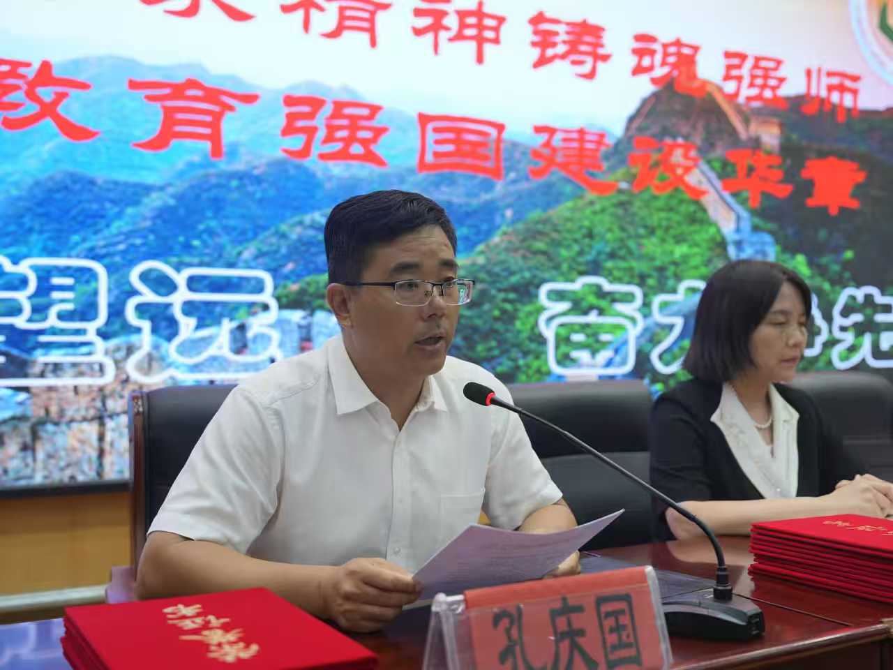 学校党委委员、副校长孔庆国宣读获奖教师名单。大会对过去一学年表现突出的优秀教师、优秀班主任、优秀教育工作者等予以表扬,学校领导为获奖教师颁发荣誉证书,肯定他们的贡献,激励全体教师以先进为榜样,深耕教育沃土。