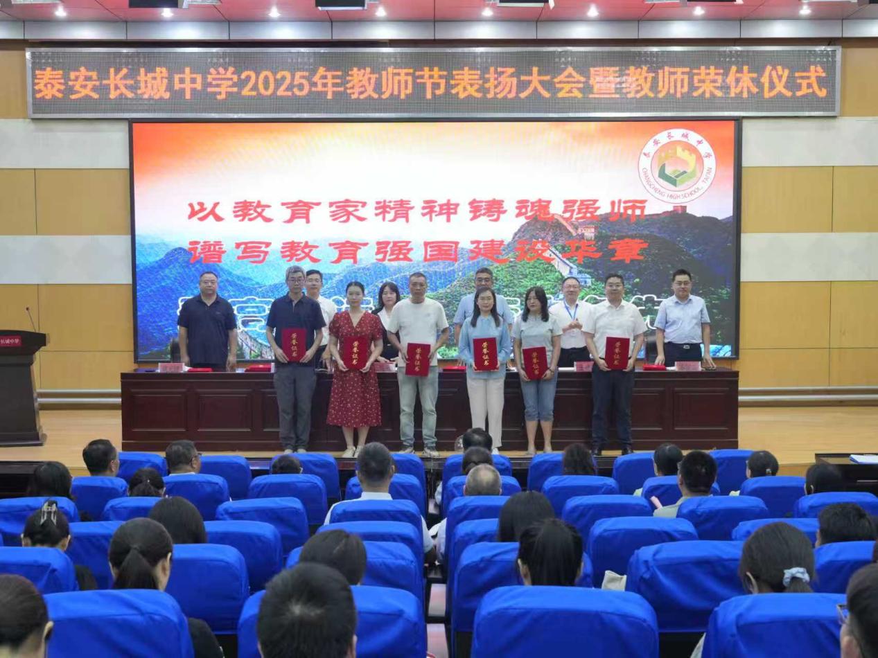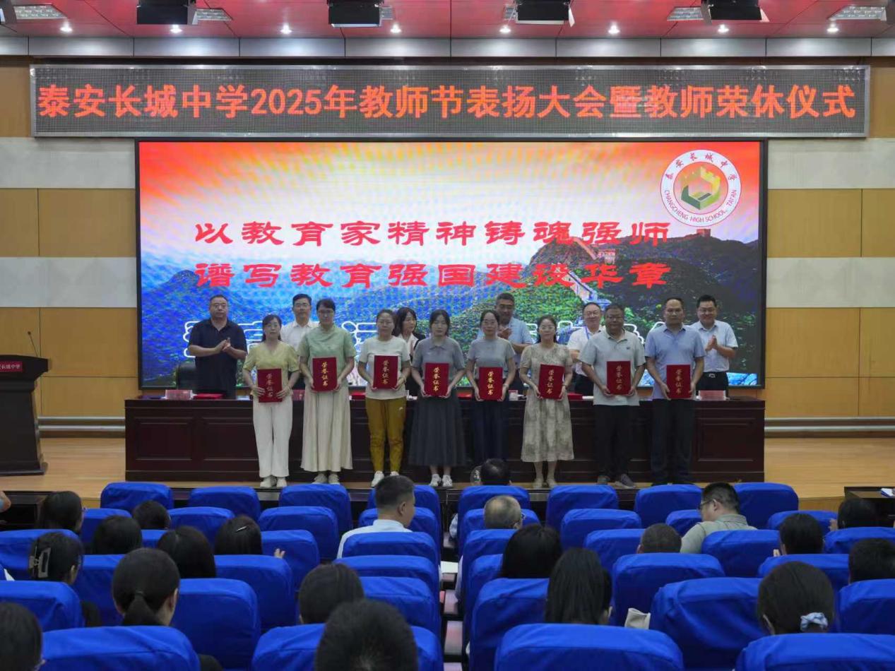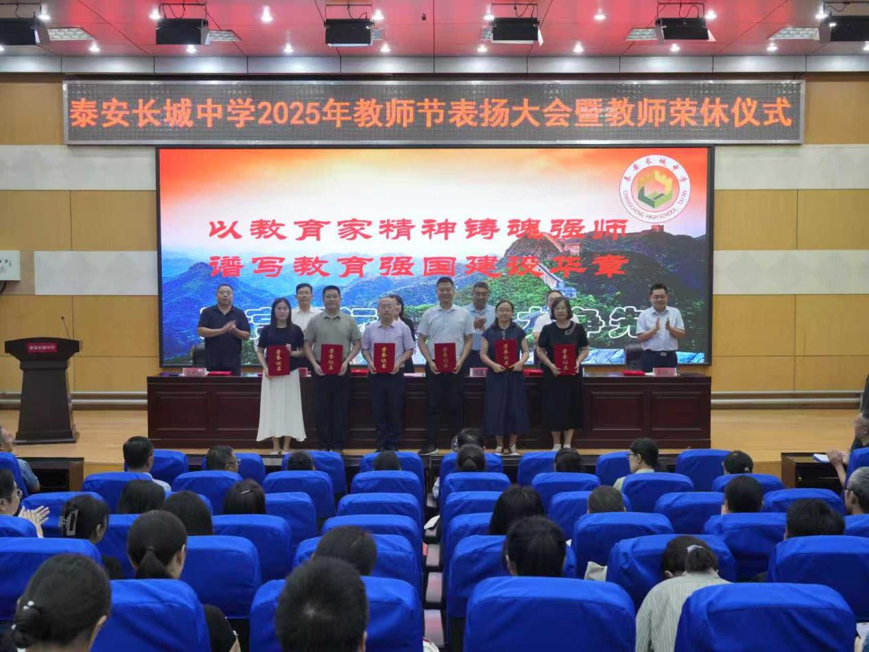 在第41个教师节到来之际,泰安长城中学举行庆祝教师节表扬大会暨教师荣休仪式。