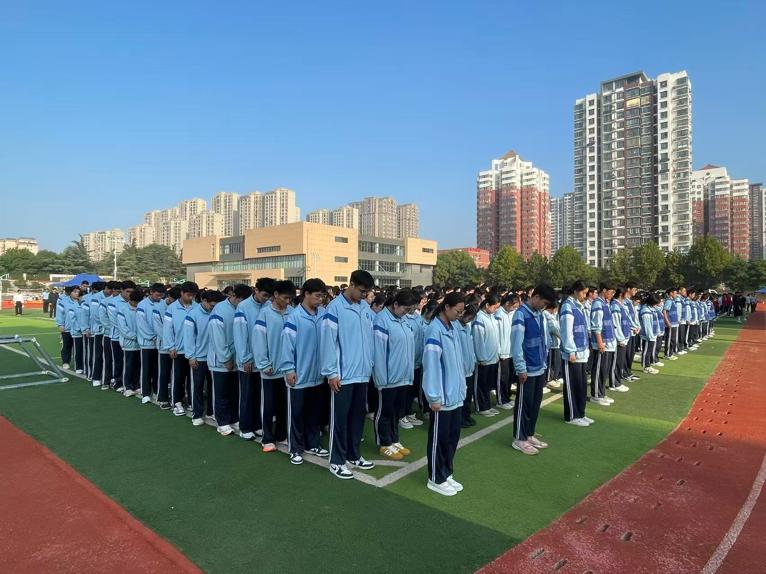 9月30日上午8时,全校师生齐聚学校运动场举行烈士纪念日升旗仪式。伴随着雄壮的《义勇军进行曲》,五星红旗冉冉升起,全体师生肃立行注目礼,高唱国歌;随后,全场默哀1分钟,向为民族独立、人民解放和国家富强英勇献身的烈士们致以最深切的敬意。