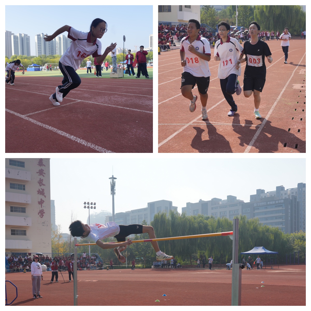 发令枪响,点燃赛场首个高潮!跑道上,运动员们如离弦之箭,以风驰电掣的速度诠释拼搏;田赛场上,跳高跳远选手纵身一跃,划出挑战自我的优美弧线;铅球划破长空,承载着力量与梦想飞向远方。