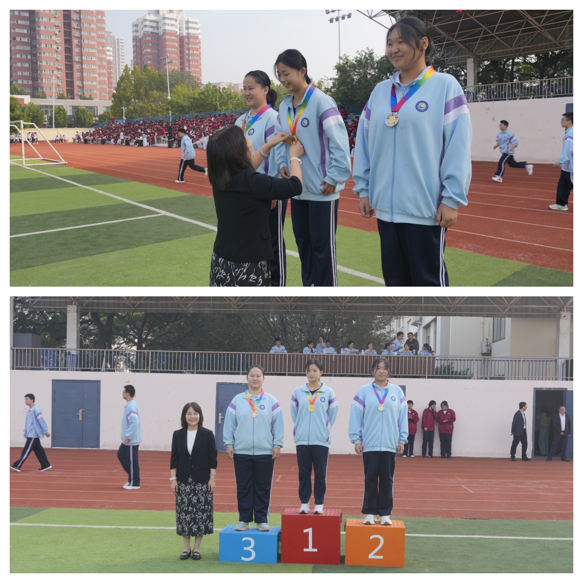 各班班主任为获奖运动员颁奖