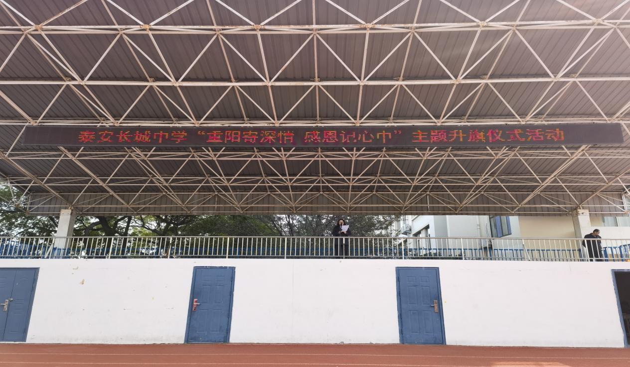 为传承“尊老敬老爱老助老”的中华传统美德,深化学生感恩教育,泰安长城中学于重阳节来临之际,举行“重阳寄深情,感恩记心中”主题升旗仪式。
