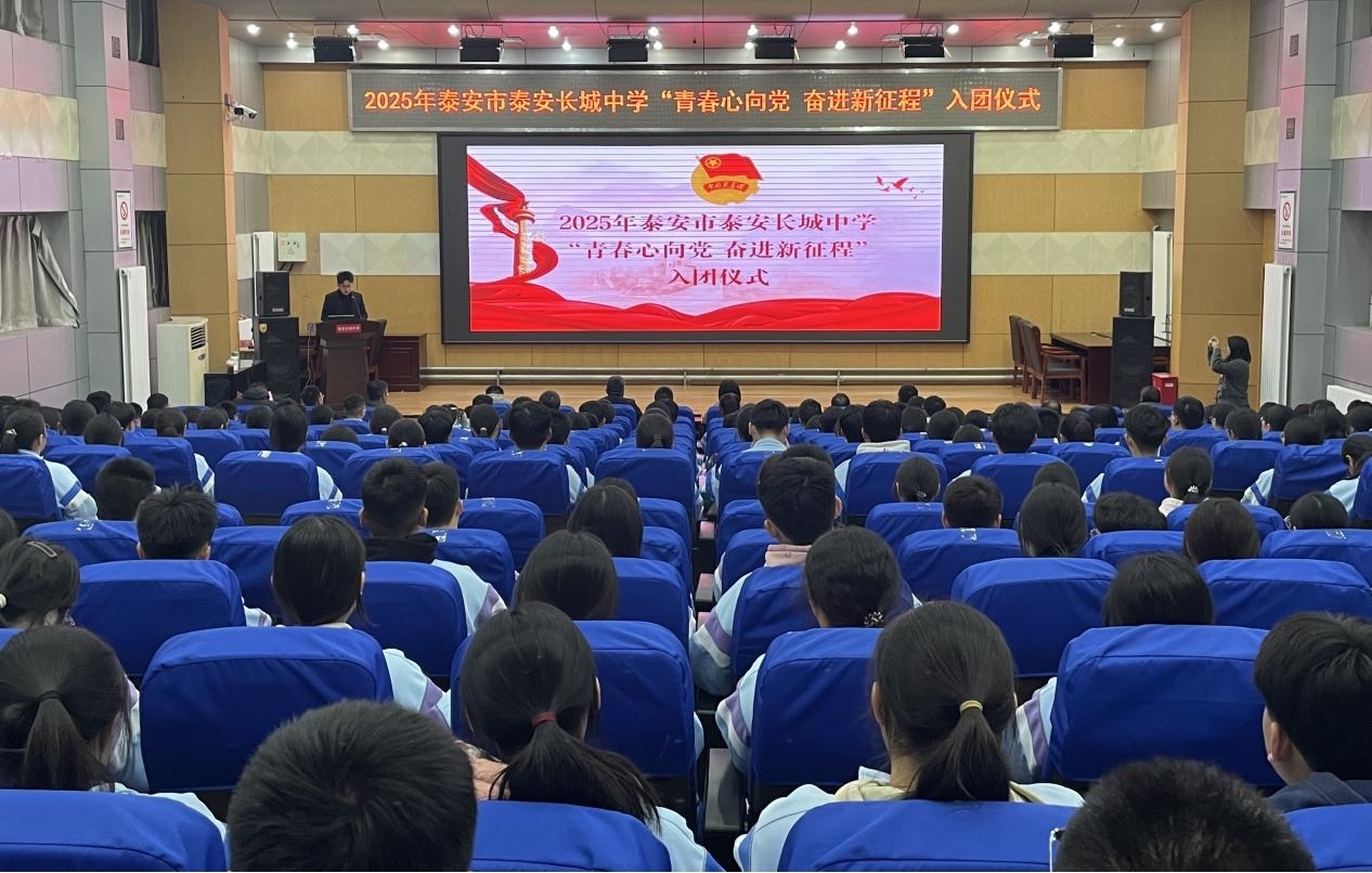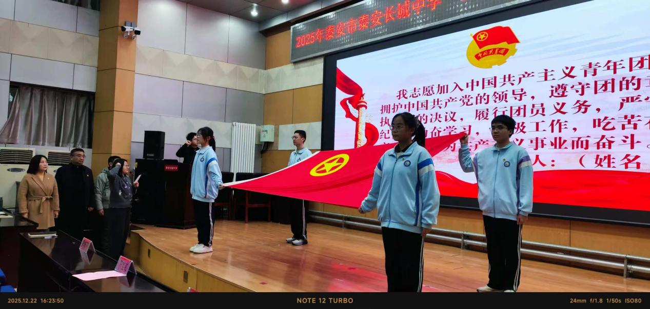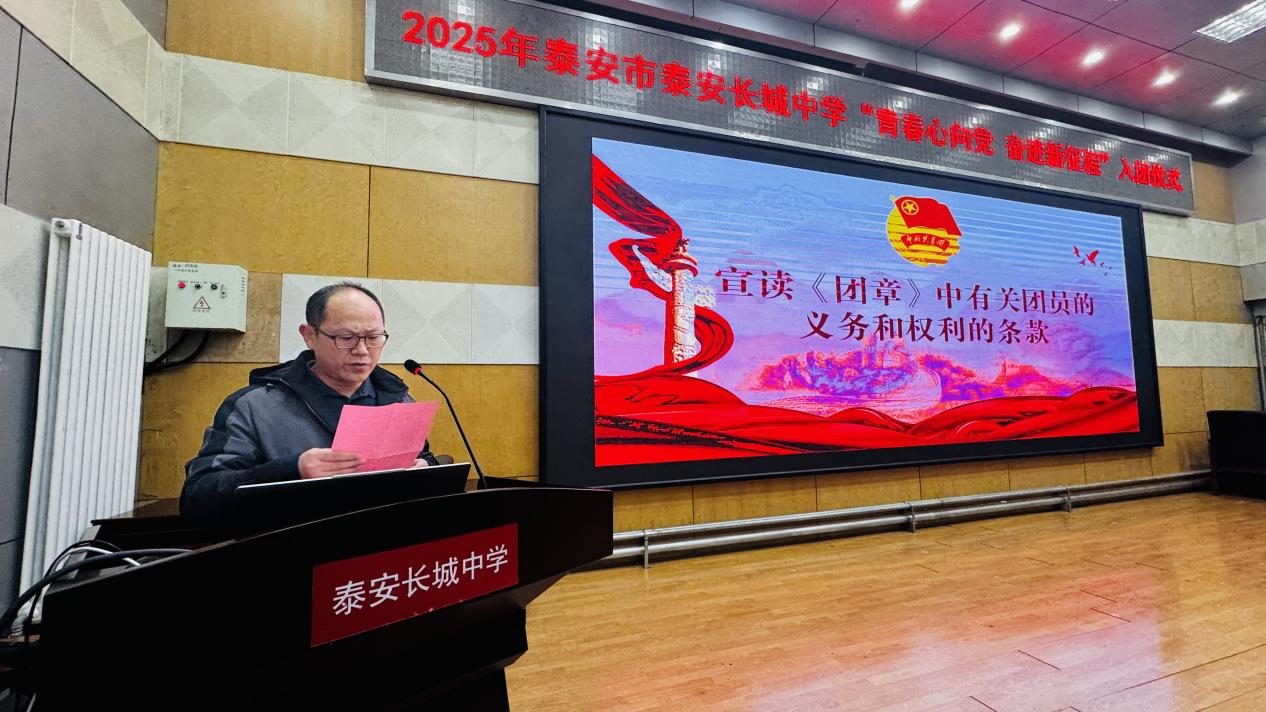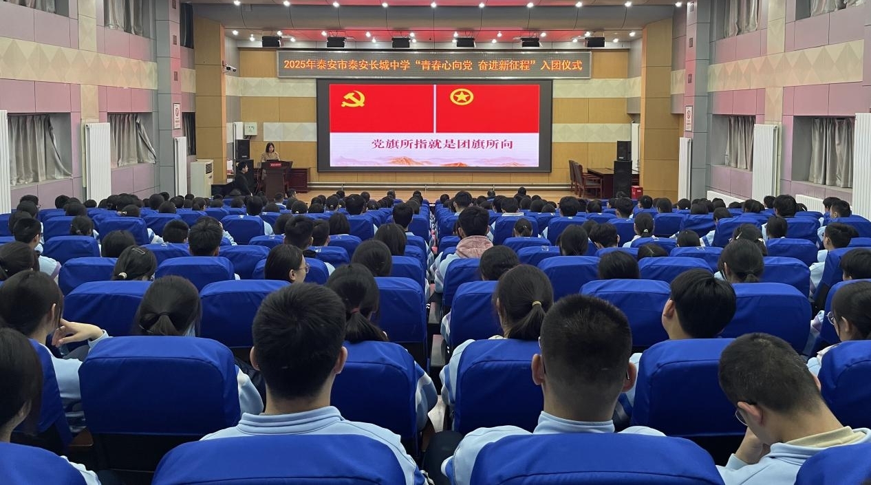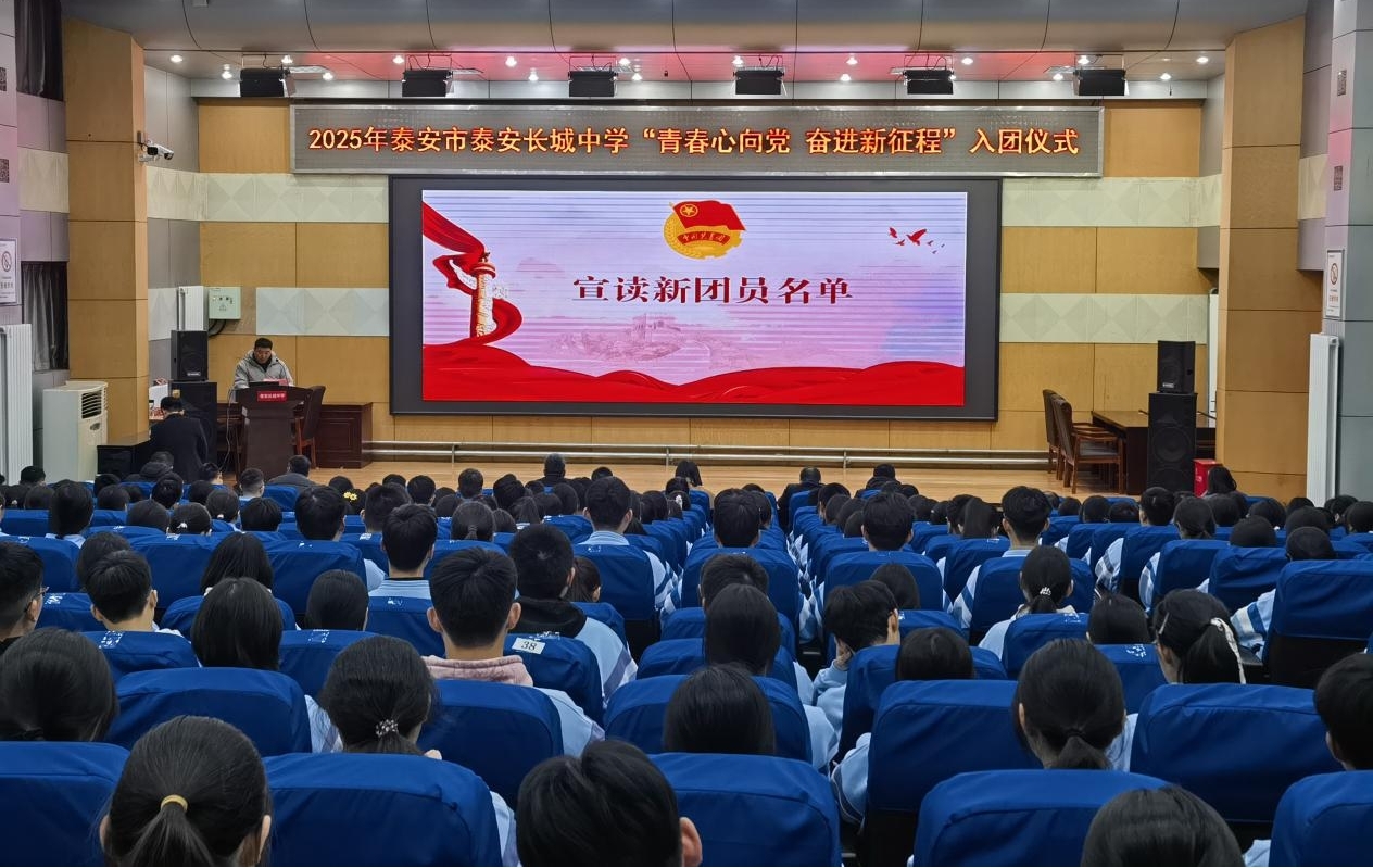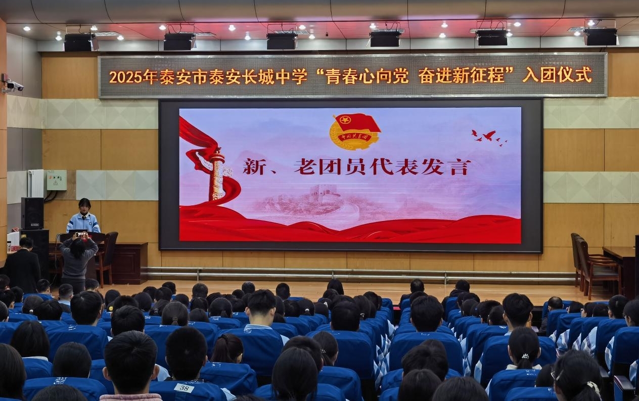 青春与使命同行,奋进与荣光相伴。近日,泰安长城中学“青春心向党 奋进新征程”2025年下半年新团员入团宣誓仪式在学校报告厅举行。学校党委委员、副校长陈佳敏,学校党委委员、副校长周晓亮,学校党委委员王德峰,校长助理、教务处主任齐国涛出席活动。年级主任、政教团委工作人员、103名新发展团员、以及高一高二全体老团员和部分高三团员代表共同见证了这一庄严时刻。
