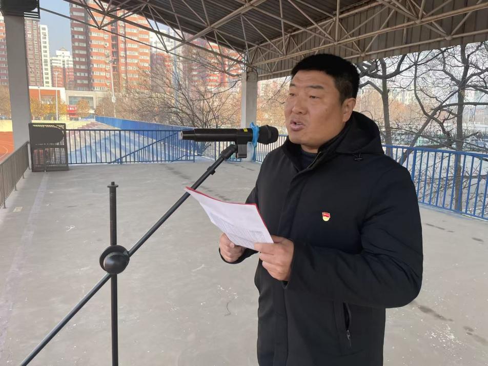 2025年12月29日上午,泰安长城中学师生齐聚操场,举行2025年最后一次升旗仪式。伴随着雄壮的《义勇军进行曲》,五星红旗冉冉升起,师生们肃立注目,满怀着崇敬与憧憬,为即将过去的一年致敬,为崭新的一年蓄力。升旗仪式后,政教处主任王磊老师发表“以坚定的理想之光 照奋进之路的辉煌”主题演讲。